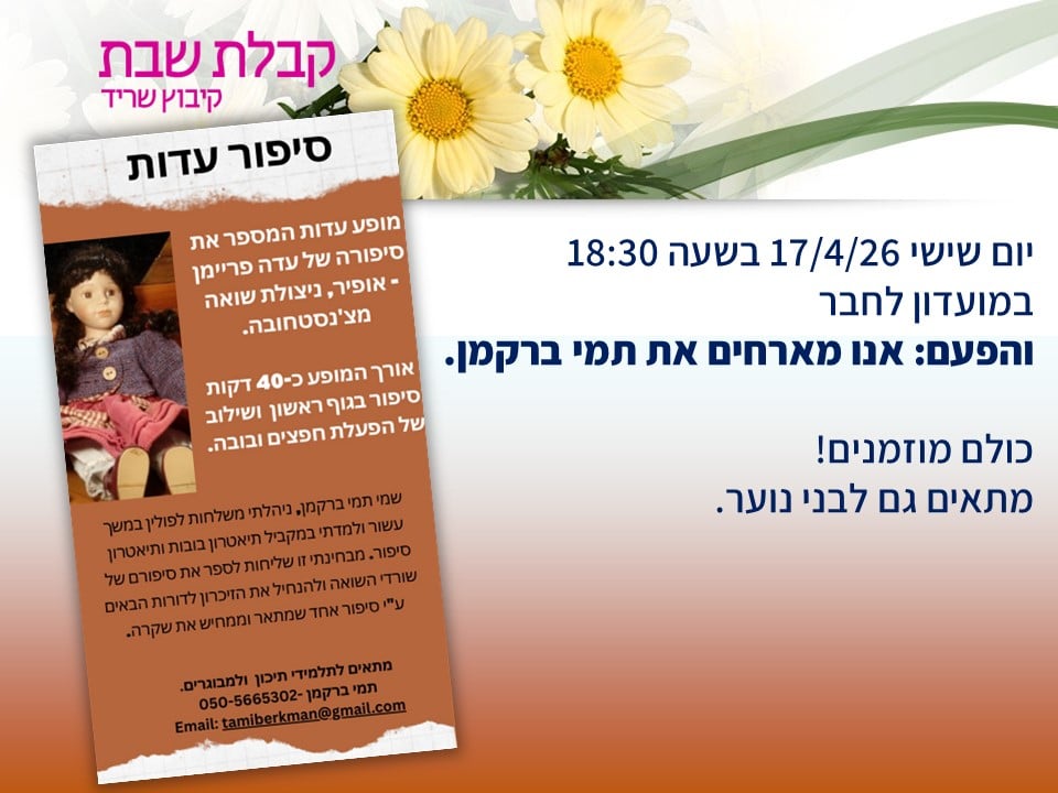 לקהילת שריד שלום רב,